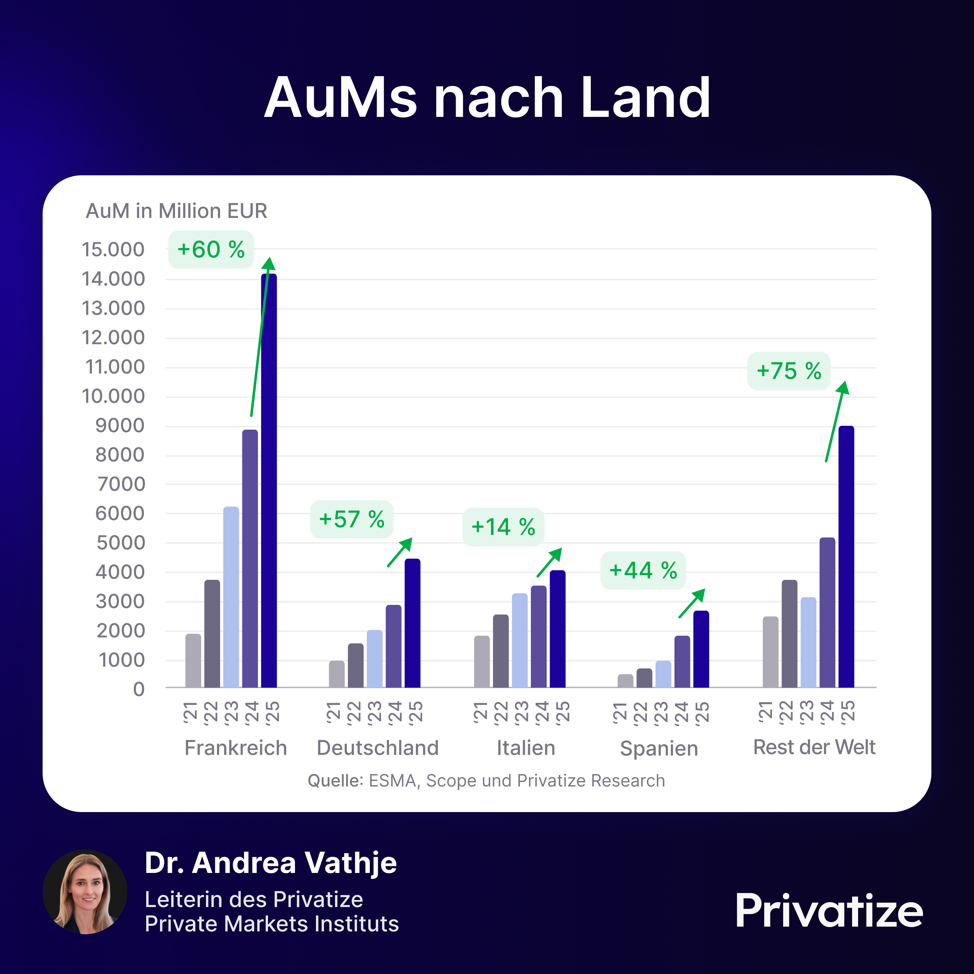 - Deutschland nun auf Platz 2 (+57 % Wachstum auf 4,4 Mrd. EUR AuM)